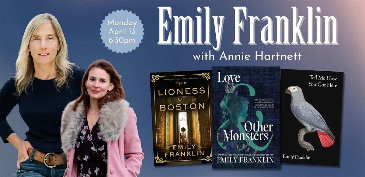Join us for an evening to celebrate bestselling author Emily Franklin's newest novel, Love & Other Monsters! Emily Franklin, author of The Lioness of Boston, will be in conversation with Annie Hartnett, the 2025 New England Book Award Winner for The Road to Tender Hearts.
