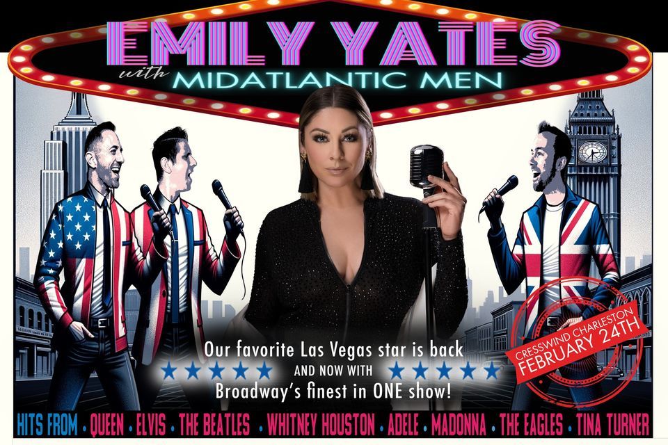 Get ready for a dazzling night of music and memories! We're thrilled to announce that the sensational Emily Yates is returning to Cresswind at Charleston Feb 24th with her spectacular solo show. But this time she's bringing the MidAtlantic Men with her for an evening not to be missed. Get your tickets now before they sell out! About Emily..