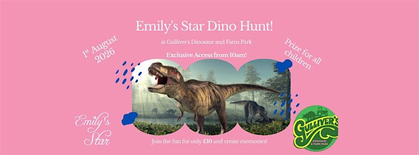 Welcome to Emily's Star Dino Hunt! Join us at Gullivers Dinosaur & Farm Park for a roaring good time. Get ready to embark on an exciting adventure to search for hidden dinosaur treasures. Explore the park, solve clues, and uncover ancient artifacts. This in-person event promises fun for the whole family. Don't miss out on this prehistoric expedition!