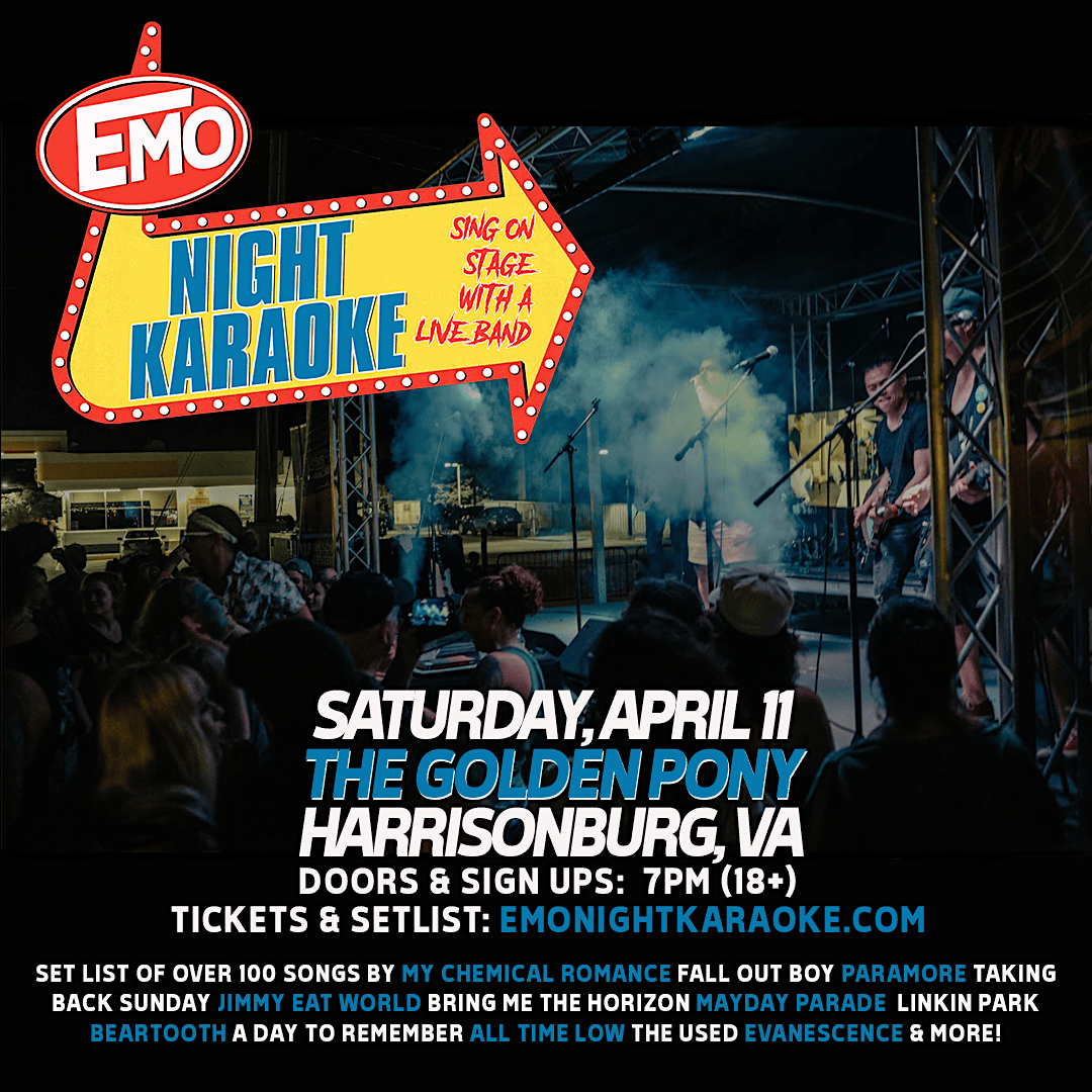 Emo Night Karaoke with a live band in Harrisonburg, VA @ The Golden Pony