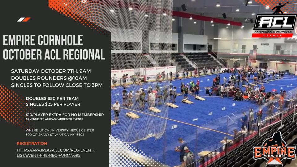 Our 1st ACL 2023-2024 October Regional will be held at the Brand New Nexus Center in Utica. Full sized rink on turf and room for 30 or so sets of boards.Standard Schedule for us: