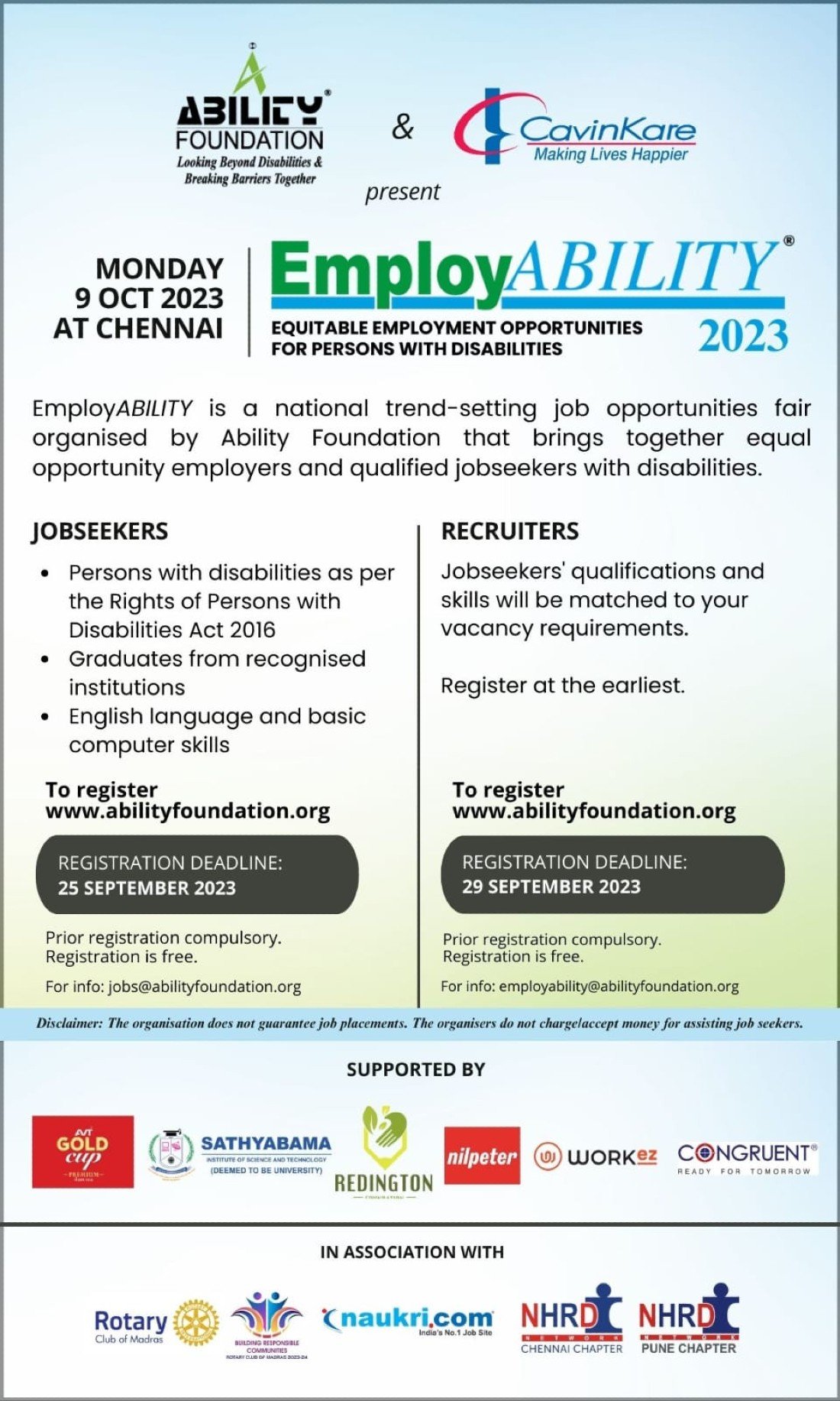 This edition of EmployABILITY is set to be held in Chennai on Monday 9th of October 2023.