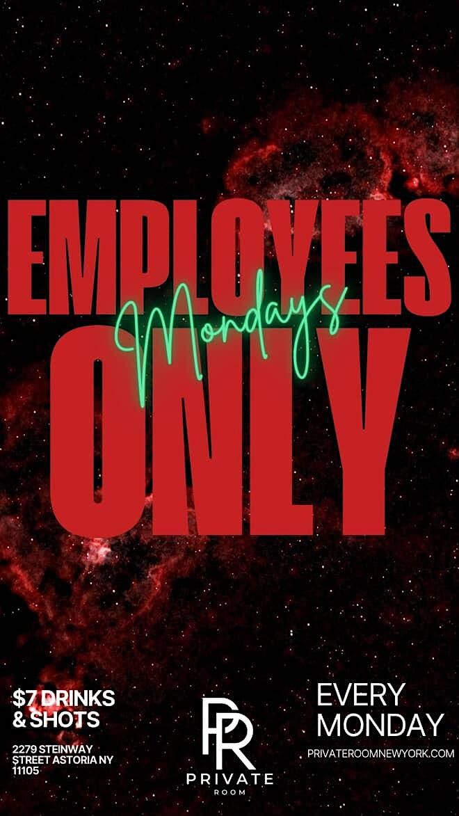 EMPLOYEES ONLY – MONDAYS @ PRIVATE ROOM