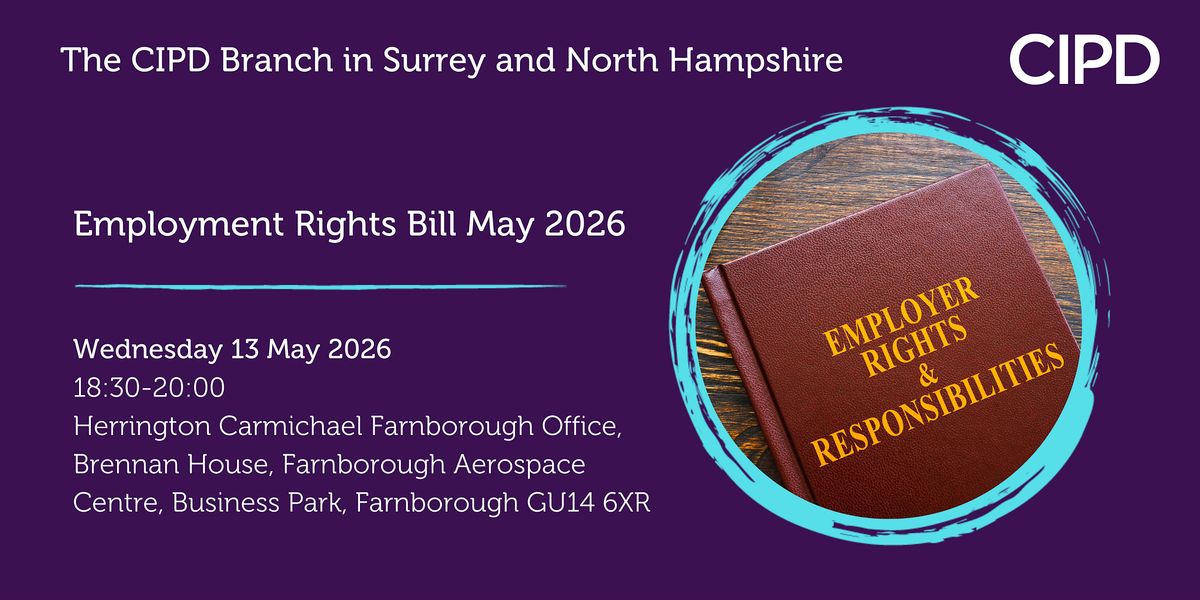 Join us in-person at the office of Herrington Carmichael law firm in Farnborough on Wednesday 13 May 2026 where we will hear from Alistair McArthur, Partner - Head of Employment, and Darren Smith, Partner – Employment for a fun and information packed session to understand and unpack the upcoming Employment Rights Bill.