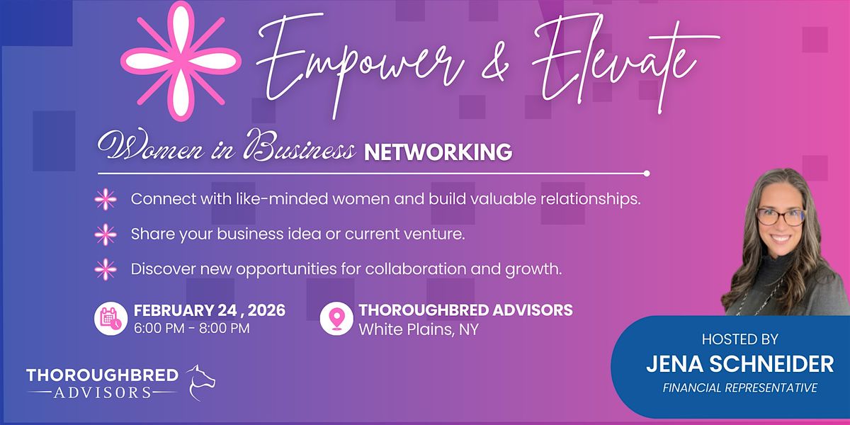Jena Schneider is a Registered Representative of, and securities are offered soley by, Equity Services, Inc., member FINRA/SIPC, 421 Troy Schenectady Road, Latham, NY 12110, 518-608-4608. Thoroughbred Advisors and Empower & Elevate are independent of Equity Services, Inc. TC8712192(0126)