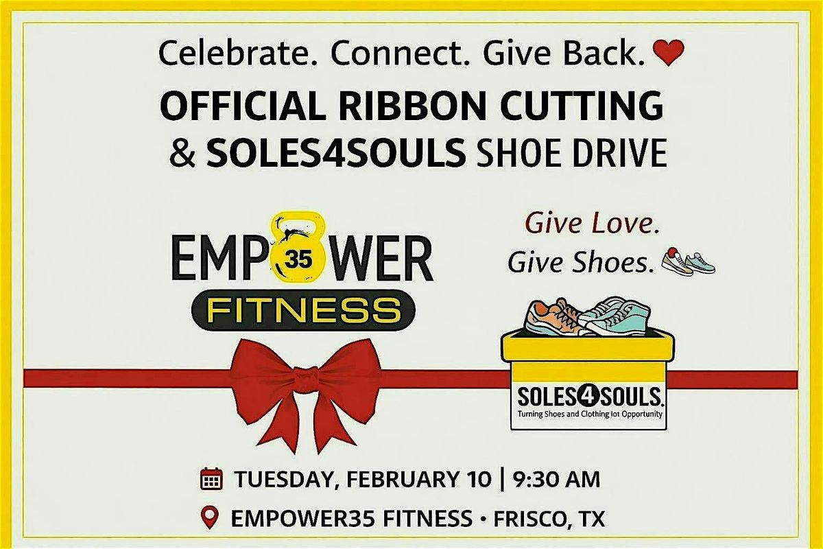Join us as we celebrate the Official Ribbon Cutting of Empower35 Fitness with the Frisco Chamber of Commerce β and kick off our βGive Love, Give Shoesβ community donation drive in partnership with Soles4Souls.