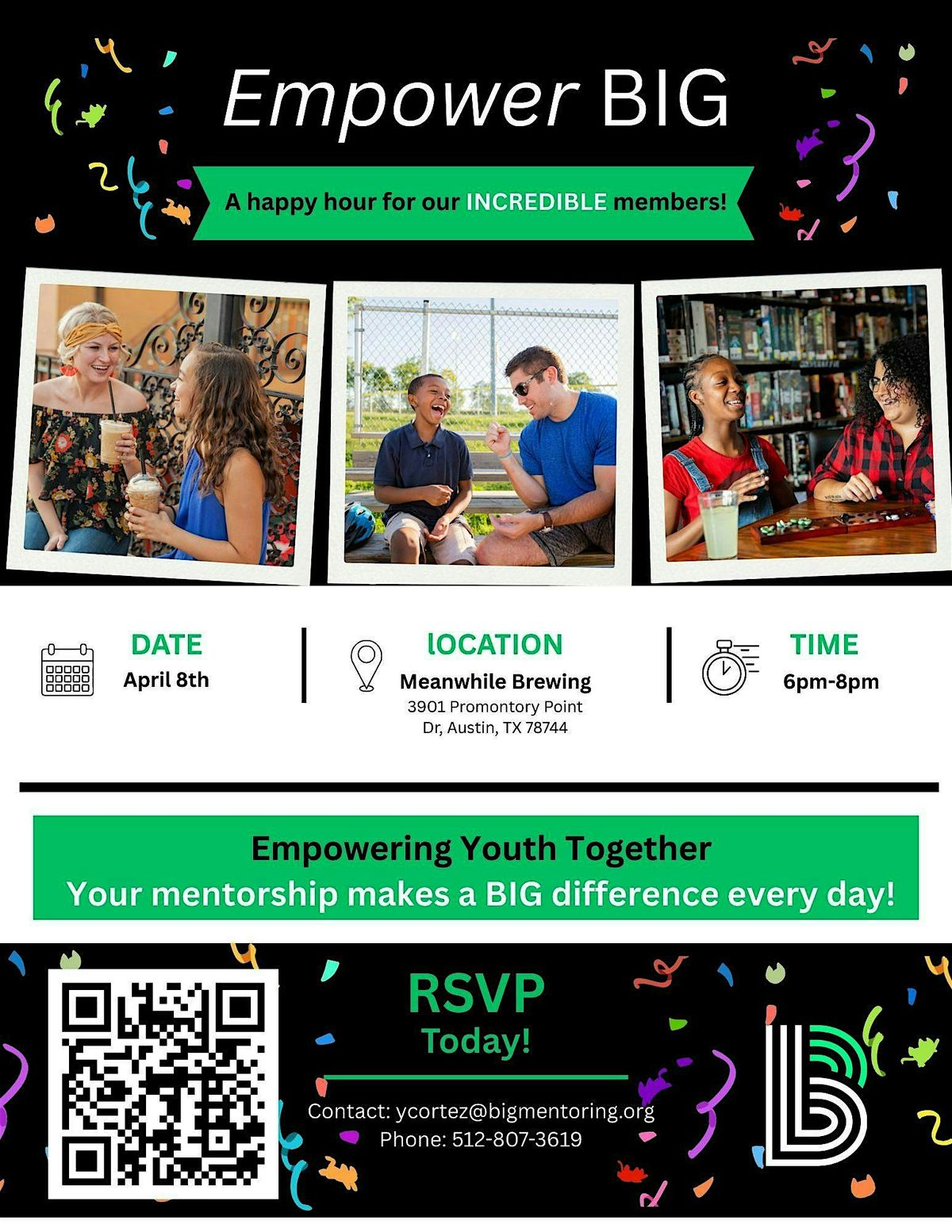 Join us for EmpowerBIG, a special mixer celebrating the incredible volunteers who make a difference every day at Big Brothers Big Sisters of Central Texas.