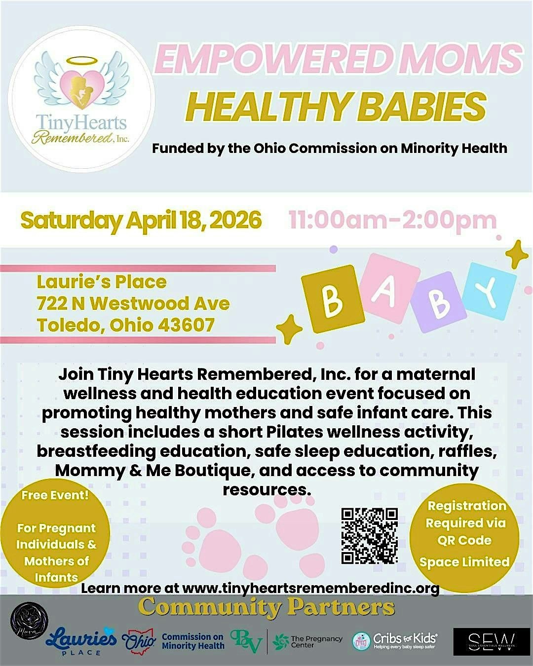 Join Tiny Hearts Remembered, Inc. for Empowered Moms, Healthy Babies, a free maternal wellness and health education event designed to support pregnant individuals and mothers of infants in our community.