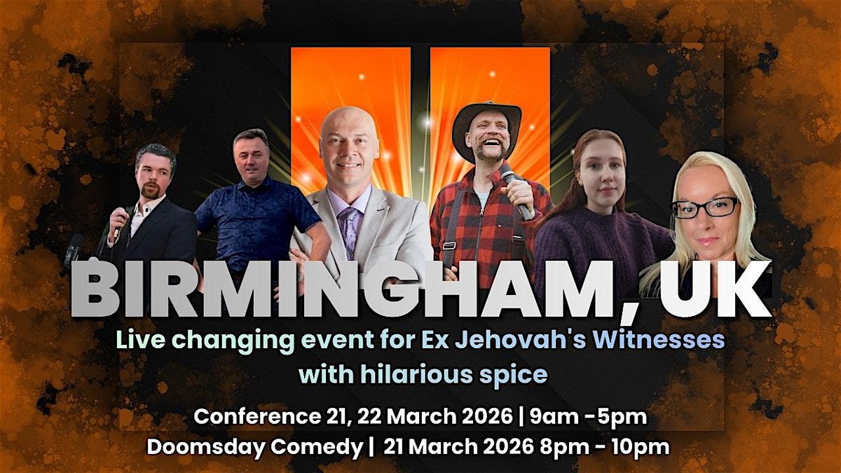 Join us in person for a fantastic day filled with inspiration, laughs, and connection! This empowering conference is designed especially for ex Jehovah's Witnesses looking to share their stories and embrace a fresh start. Enjoy uplifting talks and hilarious Doomsday Comedy that’ll keep you smiling all day. Don't miss out on this unique chance to connect and grow with others who truly get it!