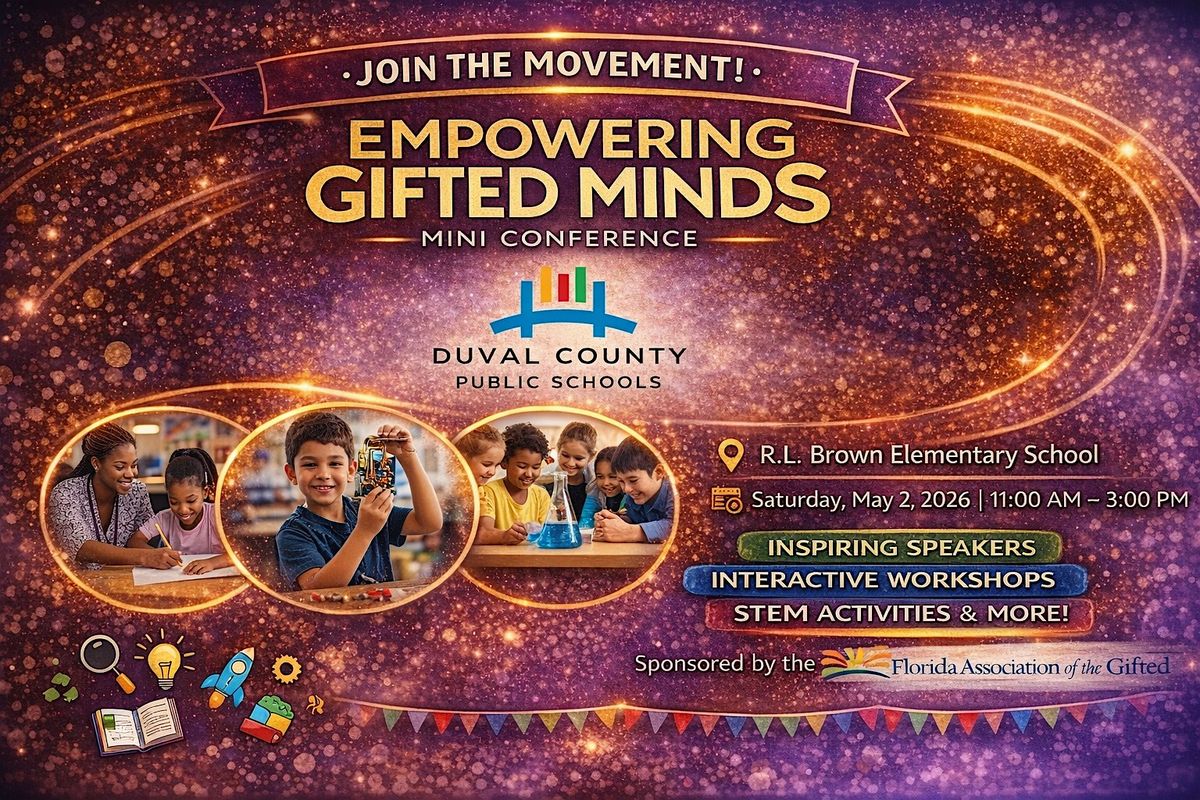 Hosted by Richard Lewis Brown Gifted & Talented Academy, in collaboration with Duval County Public Schools and The Florida Association for the Gifted, features engaging workshops such as So You Think Your Child is Gifted?, Wing Chun and the Gifted Mind, Living L.E.A.N. (Eating Habits & Health), and Marvelous Minds. Participants will gain valuable insight into gifted program eligibility, life skills, and strategies to support gifted students and their families both in and beyond the classroom.