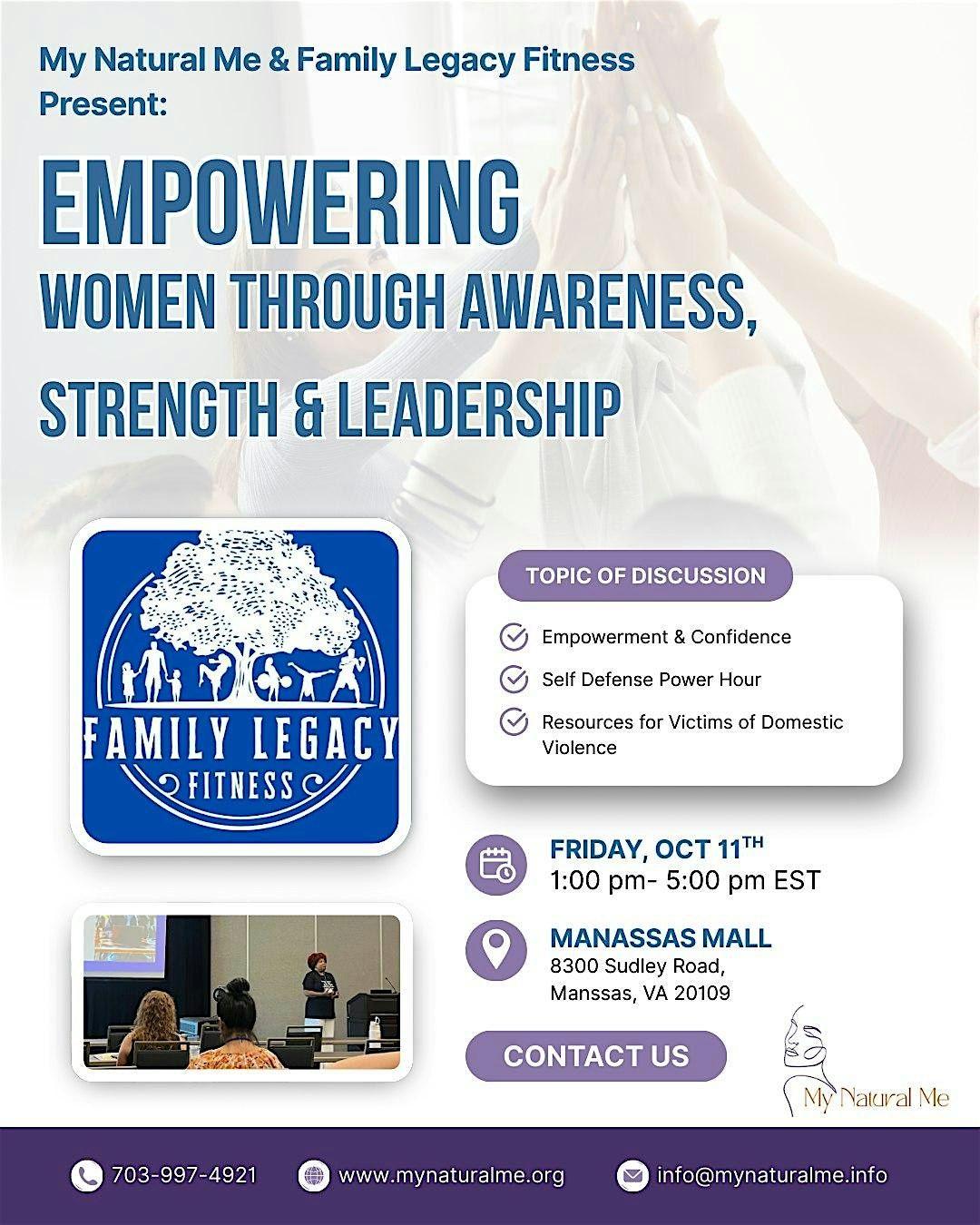 Hosted by My Natural Me in partnership with Family Legacy Fitness, this Womenβs Empowerment Event takes place during National Domestic Violence Awareness Month, shining a light on critical conversations while equipping women and teens with tools for strength and safety.