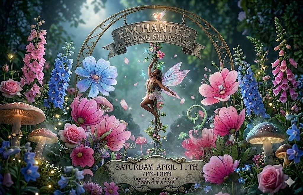 Enchanted Bloom is a captivating pole dance showcase celebrating rebirth, sensuality, softness, power, and transformation. As the seasons change and new life begins to bloom, our performers invite you into a world of artistry, enchantment, and bold self-expression.Through mesmerizing choreography, flowing movement, and spellbinding stage presence, each performance tells a story of awakening—honoring the beauty of stepping into your power while embracing your softness.