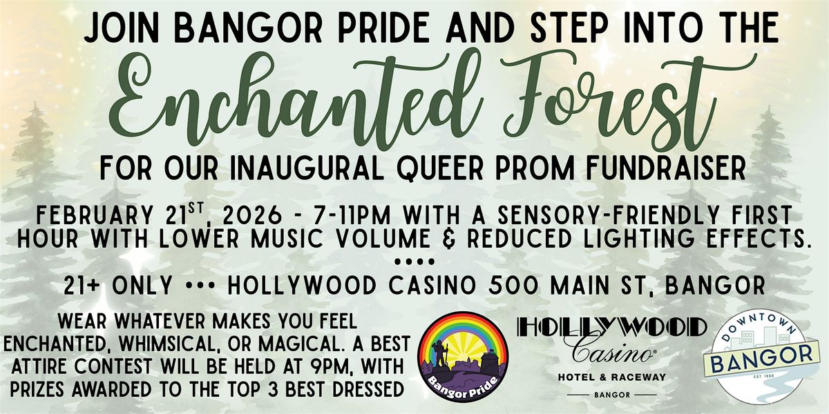 Step into the Enchanted Forest for Bangor Pride’s Inaugural Queer Prom, a 21+ magical night celebrating queer joy, creativity, and community while supporting Bangor Pride. Wear whatever makes you feel enchanted, whether that means full fantasy, glam prom realness, cozy woodland vibes, or something entirely your own.