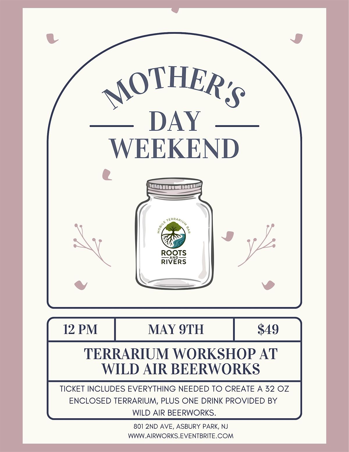 $49 includes everything needed to create a 32 oz enclosed terrarium, plus one drink from Wild Air Beerworks. Our plants are live and the moss is foraged by our family. The workshop is led by Jon, owner of Roots and Rivers.