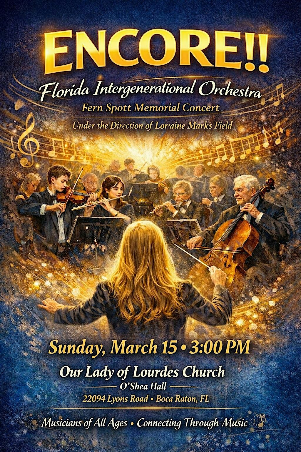 Founded on the belief that music has the power to unite people across age and experience, Florida Intergenerational Orchestra has presented concerts for 20 years that reflect excellence, collaboration, and community spirit. “Encore” serves as both a tribute to that legacy and a celebration of the musicians and audiences who have supported it over the years.