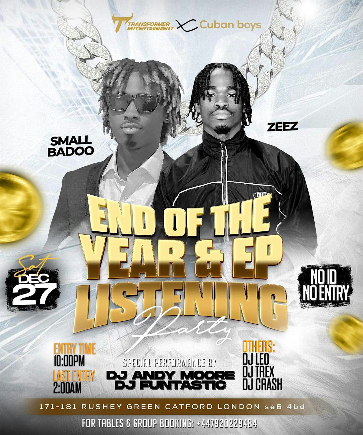 Transformer entertainment x Cuban boys present an end of year party alongside SMALL BADDO’S EP RELEASE PARTYYYY‼️ Get your ticket NOW