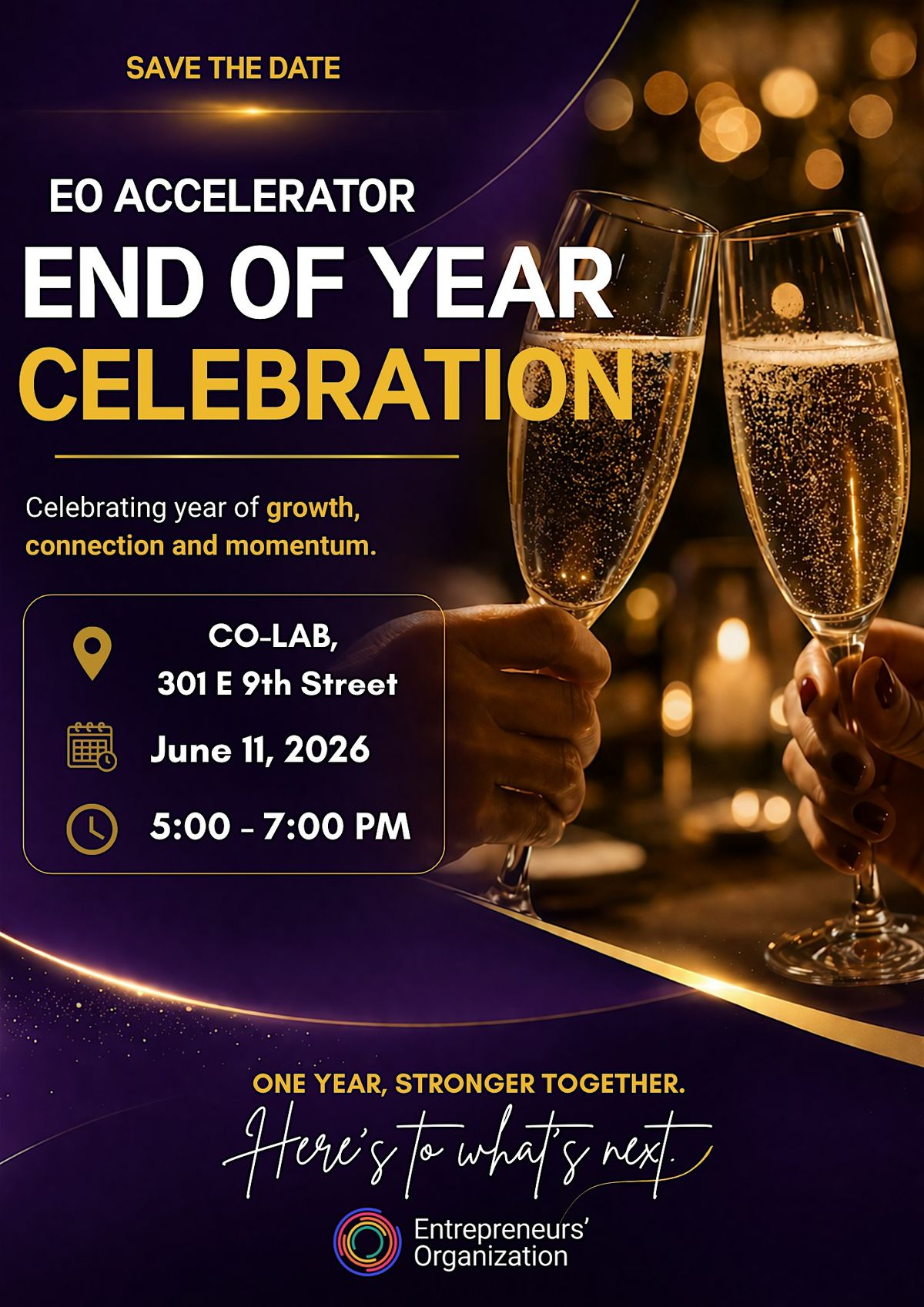 Join us for an awesome in-person party to wrap up the EO Accelerator year! Expect good vibes, great company, and plenty of fun. It's the perfect chance to celebrate all your hard work and make some unforgettable memories.