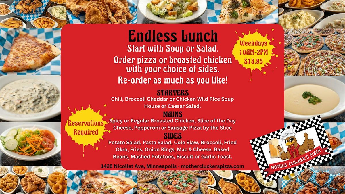 Welcome to the ultimate feast at Mother Clucker's Pizza! Join us for an Endless Pizza and Broasted Chicken Lunch on Weekdays starting at 10:00 AM. Indulge in endless slices of delicious pizza and crispy broasted chicken at our cozy restaurant. Bring your friends and family for a mouthwatering experience you won't forget! Don't miss out on this scrumptious event at Mother Clucker's Pizza!