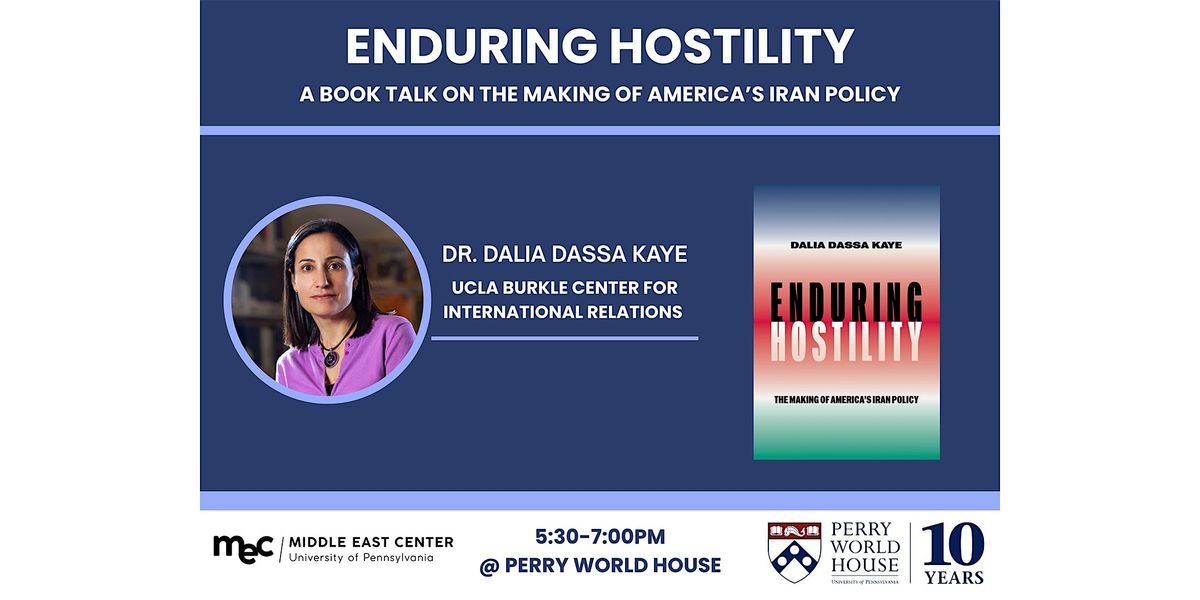 Nearly fifty years after the Iranian Revolution and creation of the Islamic Republic, tensions remain high between the United States and Iran, culminating in a U.S.- and Israeli-led war in Iran. Dalia Dassa Kaye’s timely new book, Enduring Hostilities, examines the roots of hostilities between the two countries and how U.S. policy over the past four decades has been shaped not only by differing ideologies between the two countries, but also by U.S. political perceptions at various points in time. Join Penn’s Middle East Center and Perry World House for an in-depth, thoughtful discussion on the U.S.-Iran relationship, the current state of the conflict between the two countries, and what lessons should be gleaned from nearly four decades of enduring hostilities.