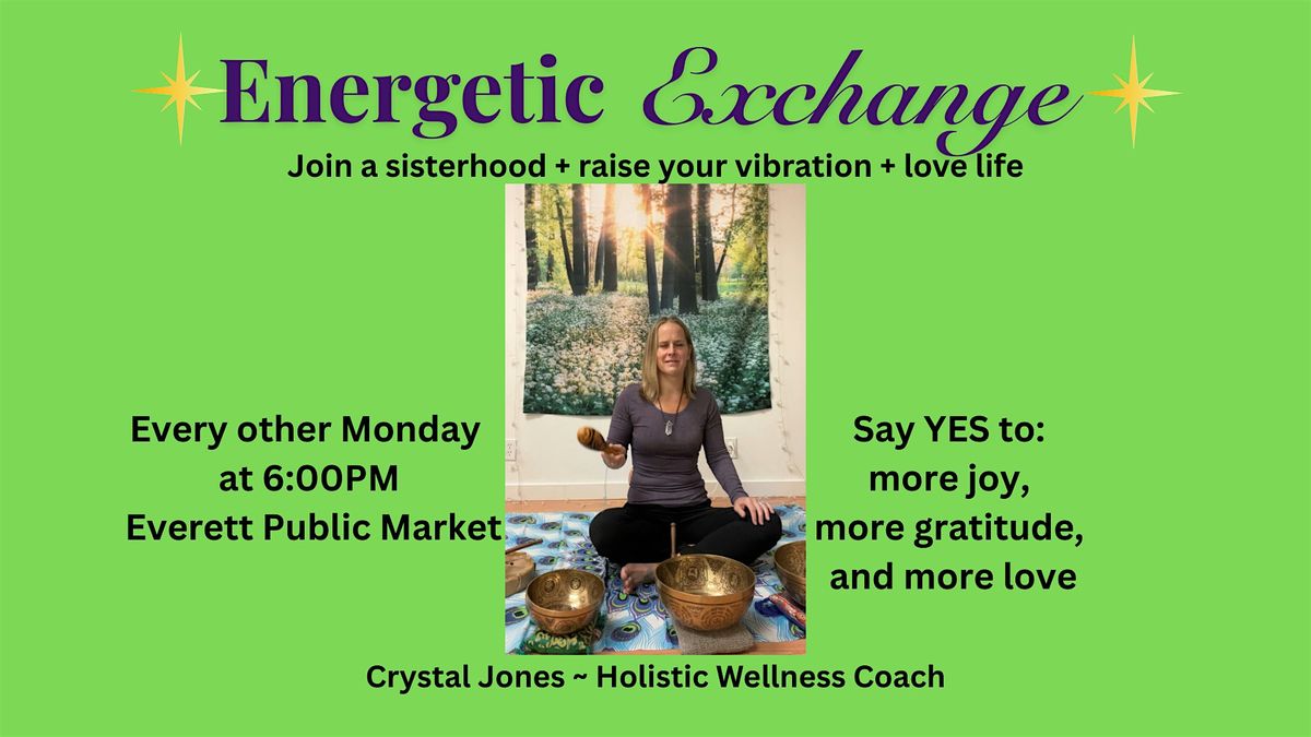 Energetic Exchange is a women's circle - all about increasing one's vibration. Take a moment to stop, be heard, and be supported.