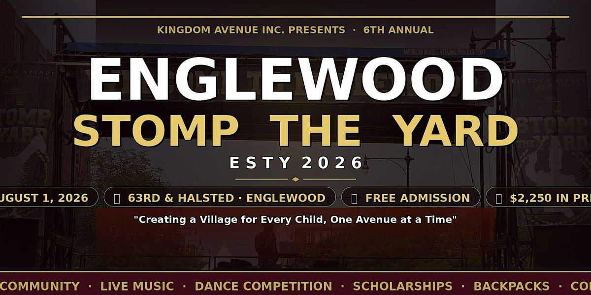 Kingdom Avenue Inc. proudly presents ESTY 2026 — Englewood Stomp The Yard, our 6th annual back-to-school block party and community celebration on Saturday, August 1, 2026 at 63rd & Halsted in Englewood, Chicago.