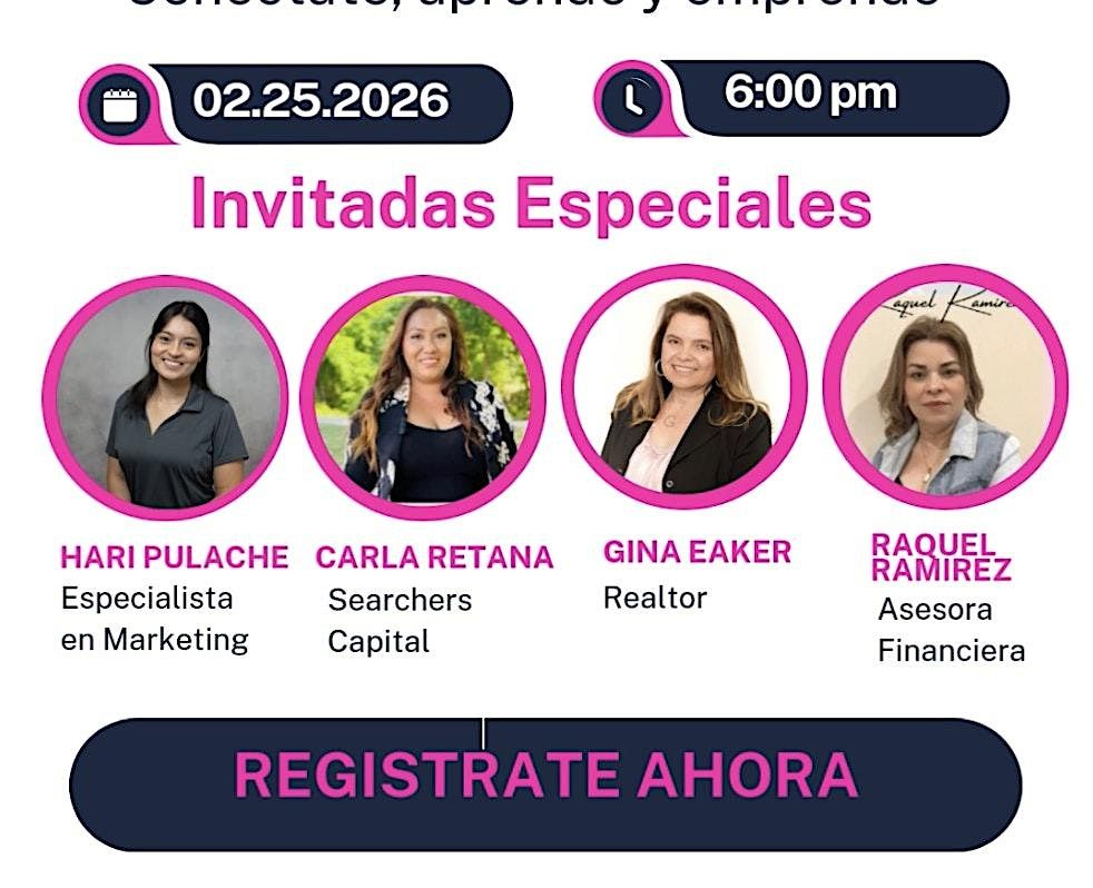 !Unete a nuestro networking gratuito "Entre Chicas" el 25 de febrero a las 6pm en Dallas. Aprende y emprende con expertas.