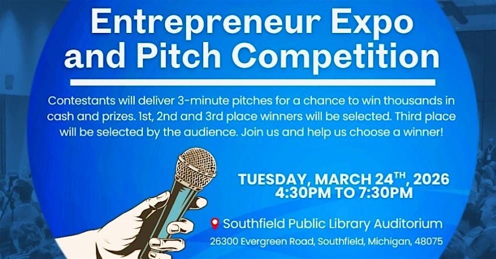 The National Entrepreneurs Association of Michigan and the City of Southfield present the 2025 Entrepreneur Expo and Pitch Competition where entrepreneurs will have an opportunity to showcase their products and services. There will also be a pitch competition where existing entrepreneurs in Michigan will have an opportunity to pitch their business ideas in 3 minutes for a chance to win $3,000 in cash prizes. The top 10 contestants will receive a complimentary pitch coaching session prior to the contest.