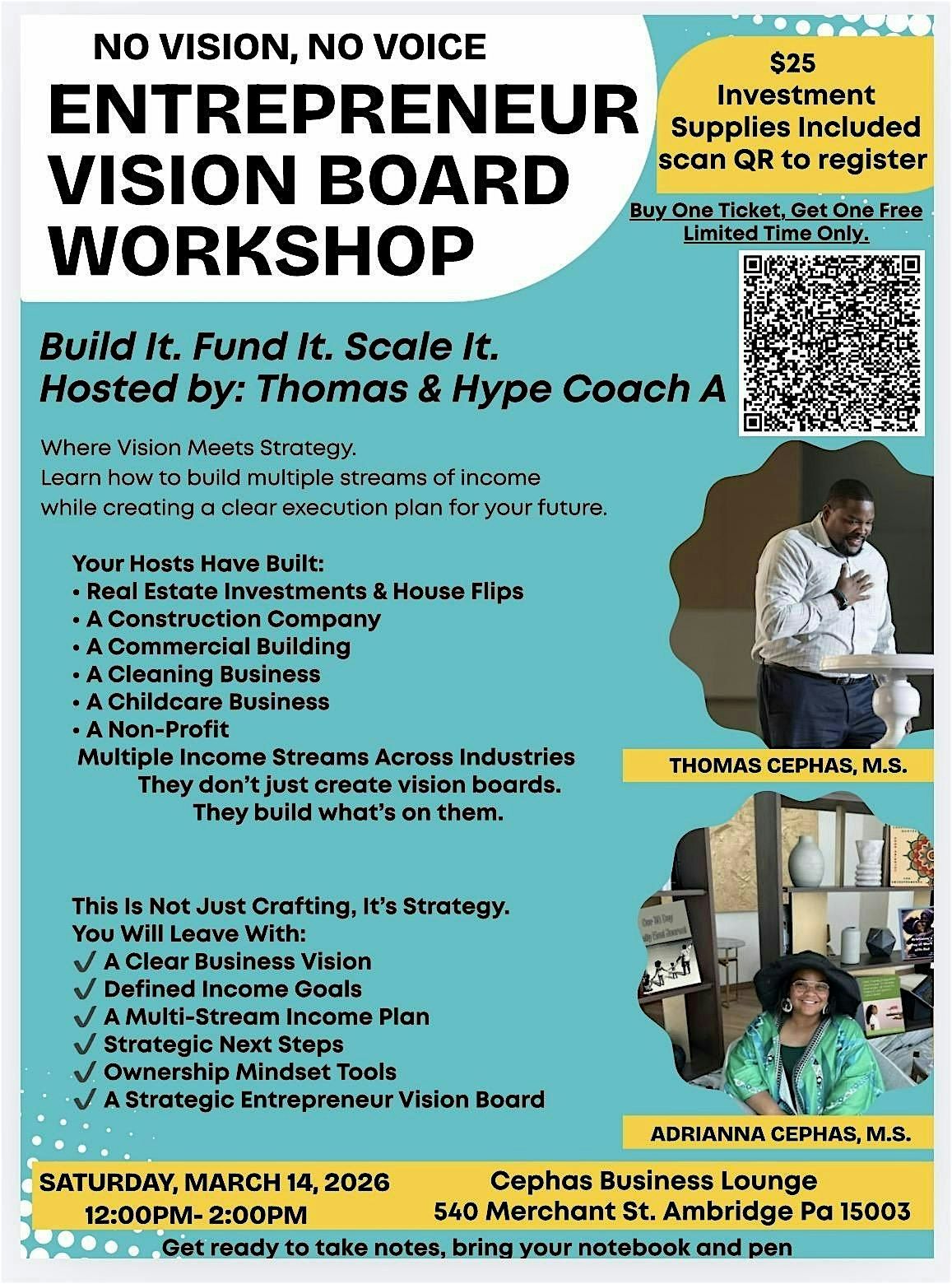 Ready to bring your business dreams to life? Join our in-person Entrepreneur Vision Board Workshop and craft a visual roadmap to your success! This is your chance to get inspired, set clear goals, and connect with fellow go-getters. Bring your ideas, creativity, and let's make those visions pop!