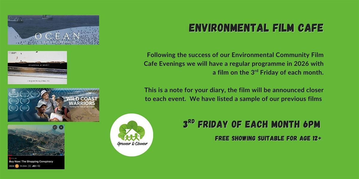 Following the success of our Environmental Film Cafe in 2025 we have decided to have a regular showing on the 3rd Friday of each month.