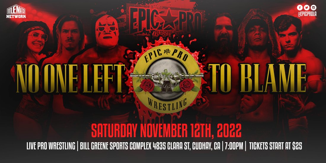 Epic Pro Wrestling presents No One Left To Blame - November 12, 2022 at 7 PM - Los Angeles, CA
