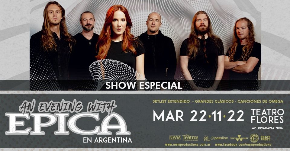 EPICA regresa a Argentina! La banda holandesa vuelve a nuestro país con un show especial: “An evening with Epica”, el mismo tendrá un setlist extendido lleno de clásicos de la banda y también contará con canciones de su último trabajo “Omega”. La cita es el martes 22 de noviembre 2022 (19hs puerta) en el Teatro Flores (Avenida Rivadavia 7800, CABA).