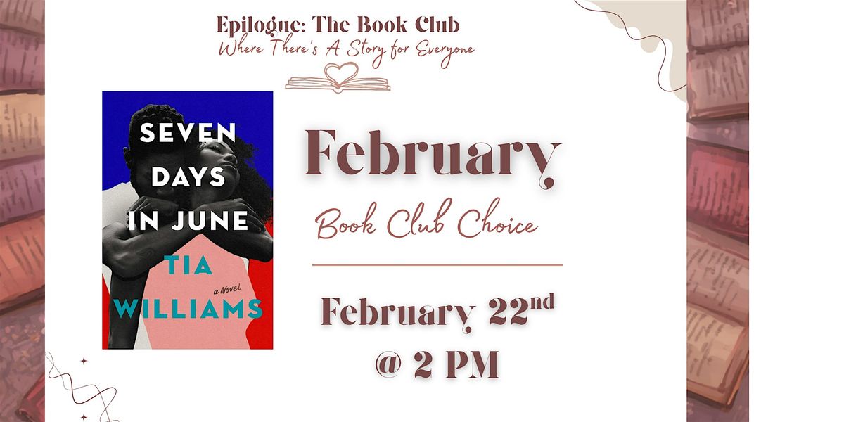 For this Black History Month, we will be reading Seven Days in June, a Black romance book by a Black author, Tia Williams. Epilogue: The Book Club is a genre themed book club, where we explore different genres every month!
