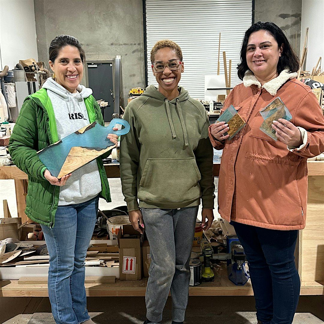 You’ll learn how to mix, color, and pour epoxy while creating a unique piece you’ll be proud to take home.