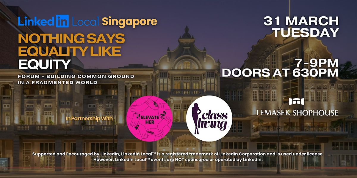 Supported and Encouraged by LinkedIn, LinkedIn Local™ is a registered trademark of LinkedIn Corporation and is used under license. However, LinkedIn Local™ events are NOT sponsored or operated by LinkedIn. LinkedIn Local™ - Singapore is also recognised as a ground-up, not-for-profit initiative under Building All Groundups for Success (BAGUS) Together, a collaboration between the National Volunteer & Philanthropy Centre (NVPC), the Temasek Foundation, and the Tote Board. This recognition underscores our commitment to producing news-centric events that serve the public good.