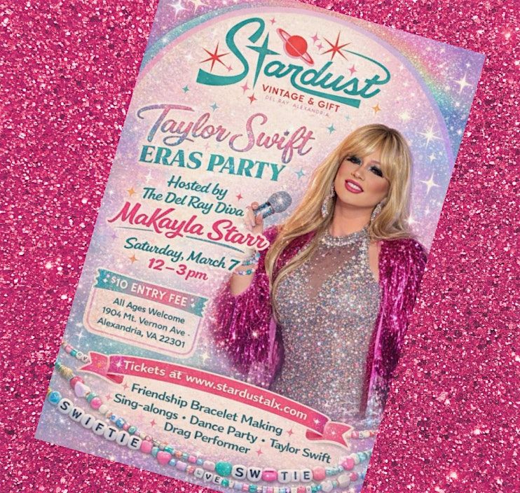Get ready to sing, sparkle, and celebrate every era at the Taylor Swift Eras Party at Stardust Vintage & Gift — hosted by Del Ray diva MaKayla Starr!