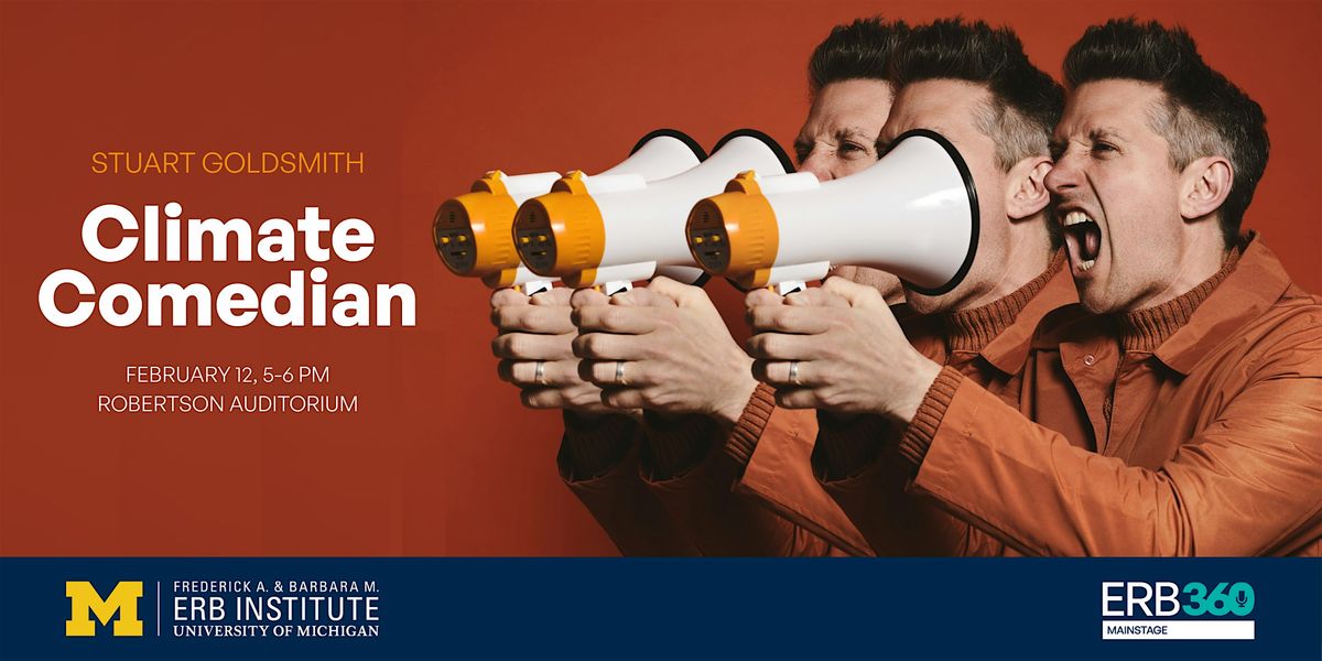 Is it okay to joke about climate change? Can humor help us tackle this existential issue? In this Erb 360 Mainstage event, British climate comedian Stuart Goldsmith brings his acclaimed act to Ann Arbor, using his unique voice to explore how we talk about climate, hope, and resilience in an otherwise challenging world. Join us for a funny, thoughtful evening designed to leave the audience energized — and laughing — as we face this important issue together.