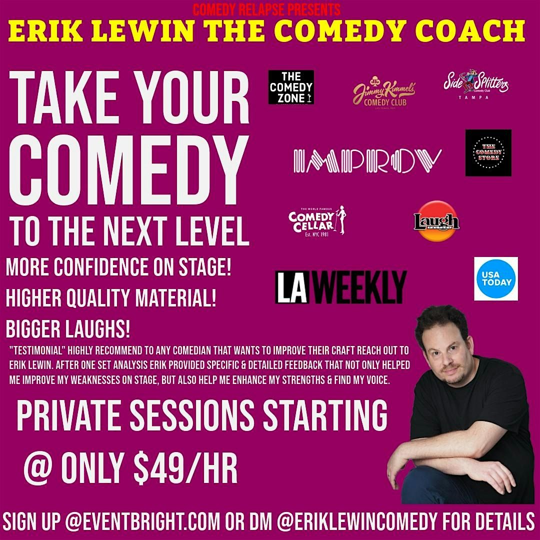 Erik's guidance will save you years of confusion! Do you want to feel more confident in stage and perform at a higher level? Write funnier material? Work with Erik to find your authentic voice and create real belly laughs!
