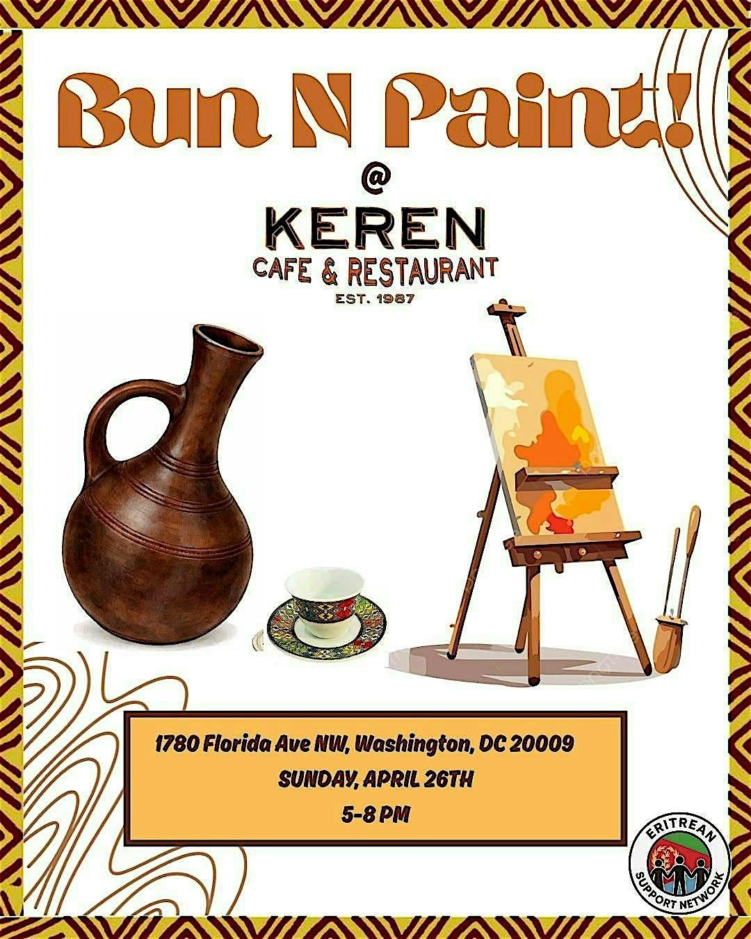 Established in 1987, Keren Cafe & Restaurant has been home to generations of Eritrean families in the area. Please join us in supporting Keren's reopening at our upcoming Bun 'N Paint event on April 26th!
