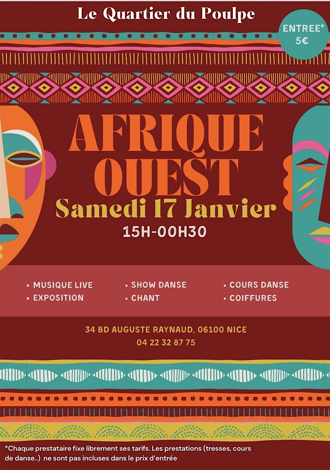 Le samedi 17 janvier, Le Quartier du Poulpe met le cap sur l'Afrique de l'Ouest ! Venez vivre une journée et une soirée placées sous le signe du partage, de la musique et de la gastronomie.Des rythmes envoûtants du Mali aux saveurs épicées du Sénégal, laissez-vous transporter par l'énergie solaire de ce continent magnifique.