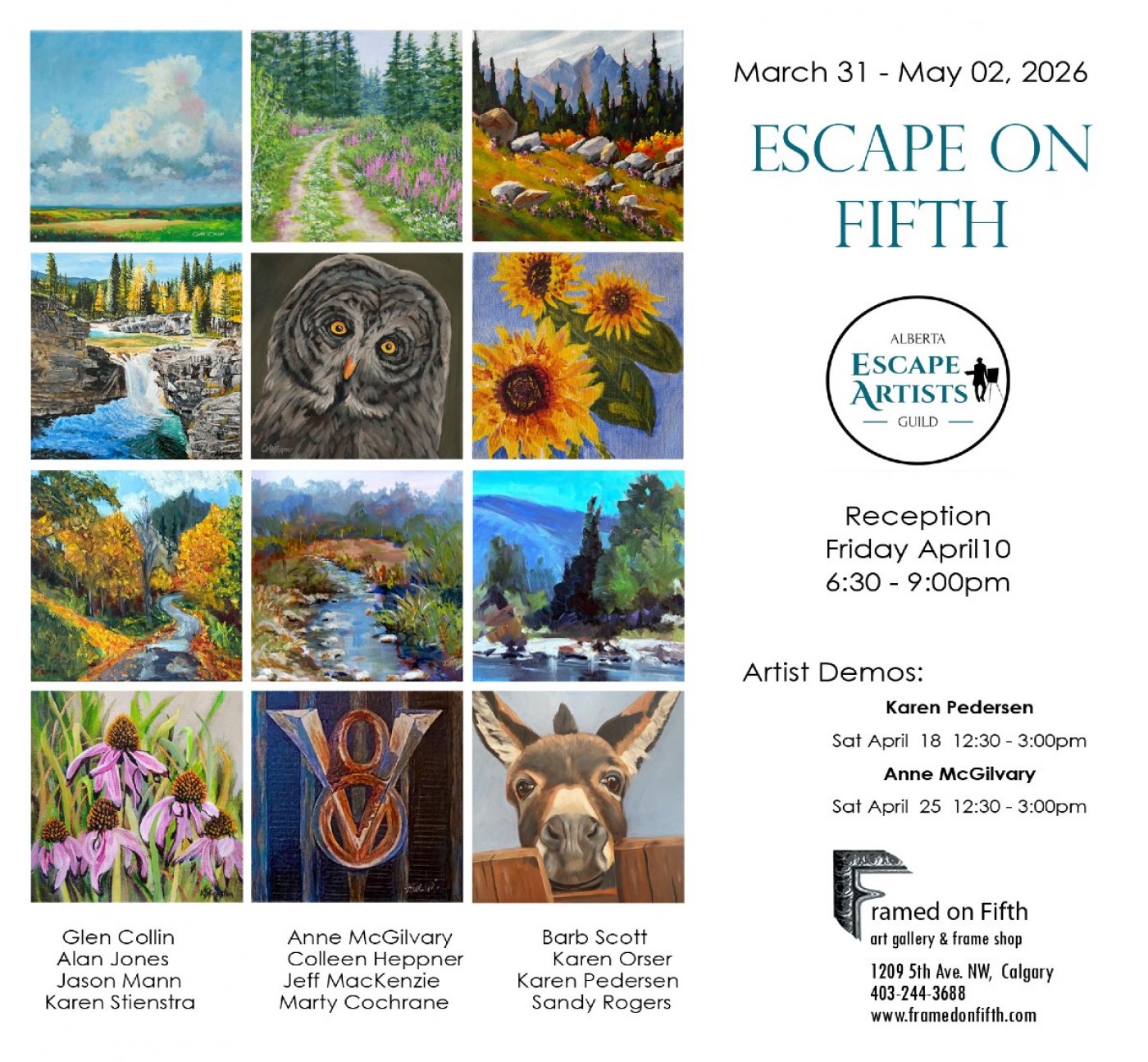The Alberta Escape Artists Guild presents their Spring Art Show and Sale. Join us at Framed on Fifth Gallery for the month of April to May 2, 2026. Experience an inspiring blend of exceptional artwork in a pleasant atmosphere. Admission and parking is free.