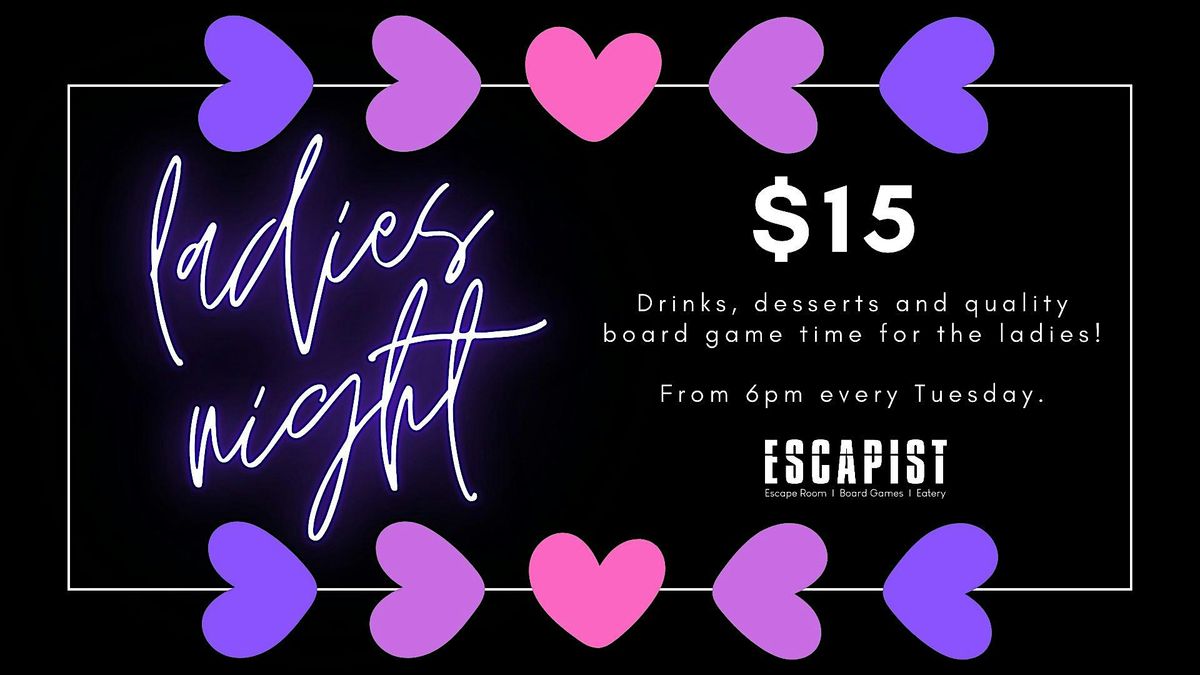 Ticket is $15 each and it includes board gaming till 10pm, drink and dessert and great company.