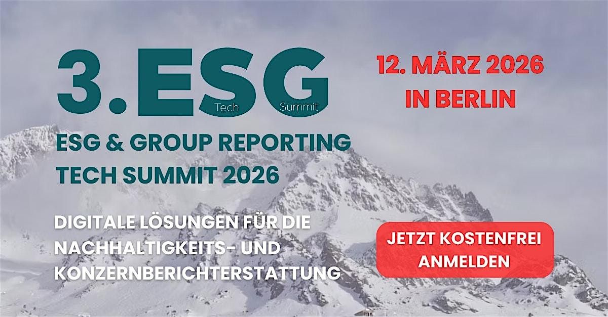 Der ESG & Group Reporting Tech Summit 2026 ist eine kostenfreie Fachveranstaltung rund um digitale Lösungen für Nachhaltigkeits- und Konzernberichterstattung.