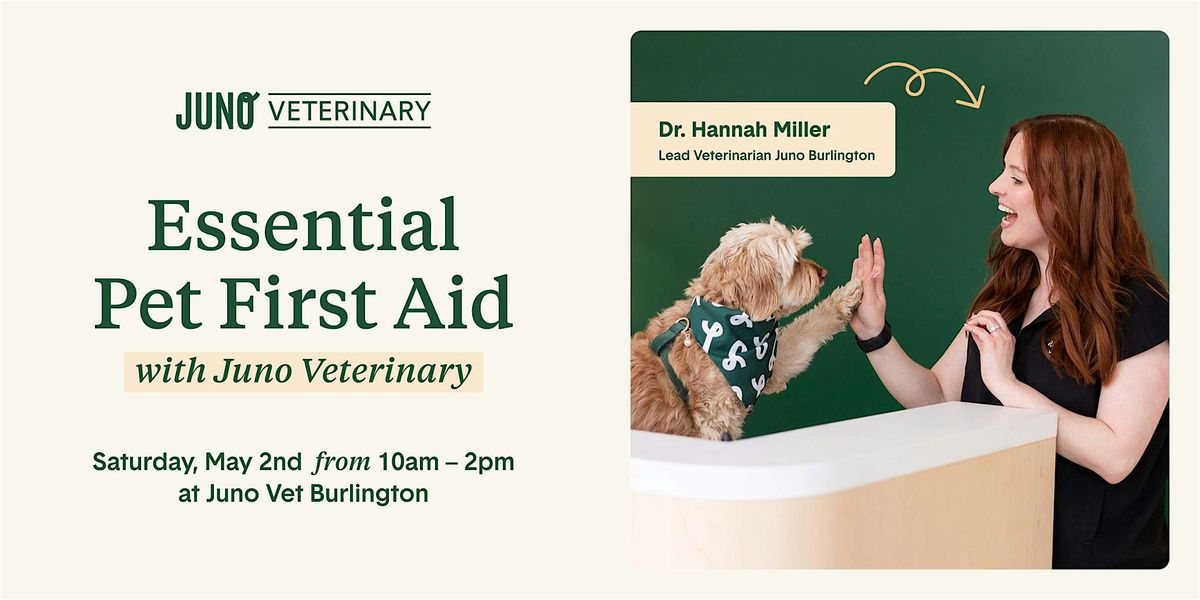 On May 2nd, the veterinary team at Juno Burlington is hosting a comprehensive, vet-led pet first aid seminar. This isn't a basic handout. It's a full half-day of lectures, hands-on stations, and real veterinary knowledge.