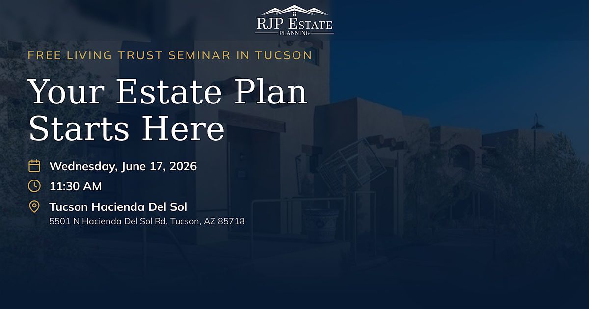 Join us for an informative estate planning seminar on Wednesday, June 17, 2026 at 11:30 AM at Tucson Hacienda Del Sol in Tucson, Arizona.Register on our website: https://rjpestateplanning.com/seminars/tucson/2026-06-17In just 90 minutes, you'll get clear answers about:Wills vs. Trusts - understand the key differences and which is right for youRevocable Living Trusts - how they help you avoid Arizona probate entirelyAsset Protection - strategies to shield your money from creditors and unintended heirsIncapacity Planning - powers of attorney and medical directives that ensure your wishes are honoredInheritance Safeguards - protecting your children's inheritance from divorce or creditorsCommon Mistakes - costly errors families make and how to avoid themPresented by Clint Smith, Estate Planning Attorney and author of Estate Planning: A Plain English Guide to Wills and Trusts, alongside Lenny Trujillo, Senior Planning Consultant with 25+ years of advisory experience.This is a free, no-obligation educational seminar. Seating is limited - register today to reserve your spot.