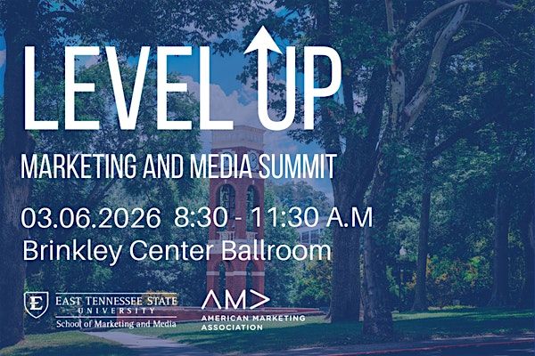 Get ready to level up your marketing and media game at the ETSU AMA School of Marketing & Media Level Up Conference! Join us in person for a morning packed with fresh ideas, networking, and hands-on sessions designed to boost your skills. For students interested in Marketing and Media, this event is the perfect place to connect and start your career path. Don’t miss out on the chance to elevate your knowledge and have some fun along the way!