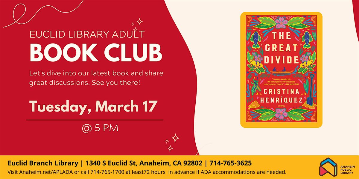 Join us this month for a lively discussion of “The Great Divide” by Cristina Henriquez.About this Event