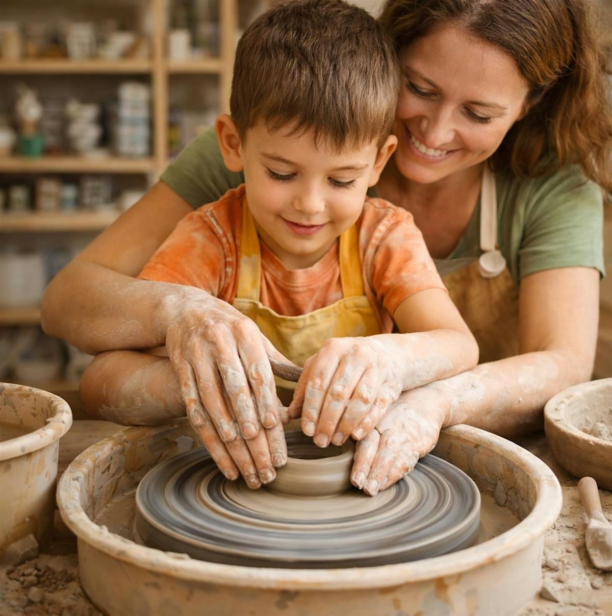 This all-inclusive wheel throwing class offers children a chance to experience the pottery wheel in a gentle, highly supported environment, alongside a parent or guardian.