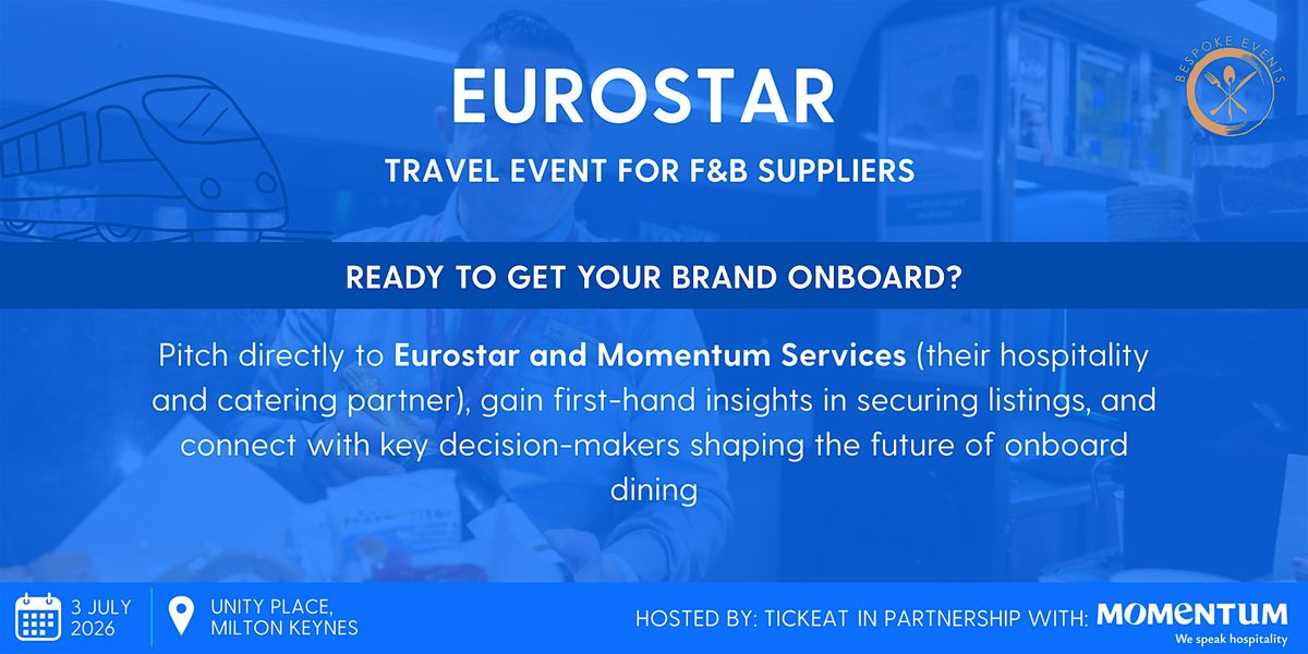 In recognition of Eurostar's continued journey as Europe's premier high-speed rail service, in partnership with Momentum, TickEat is thrilled to announce a landmark event for Eurostar's and Momentum's esteemed food and beverage teams. This exclusive event, designed for trailblazers in the food and drink industry, aims to bridge the gap between small businesses and big businesses, offering an unparalleled opportunity to learn about launching your products with one of Europe's most iconic rail operators.