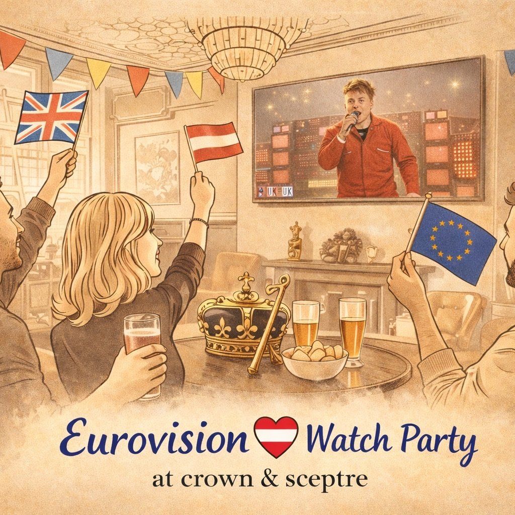 Watch the Eurovision 2026 Grand Final live in Fitzrovia with big screens, buzzing vibes and a fun country-draw prize at The Crown & Sceptre