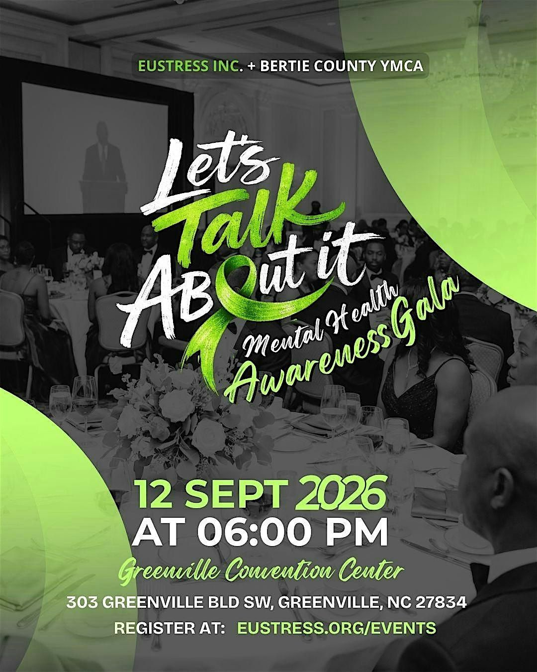 Eustress Inc. and the Bertie County YMCA present the annual Bertie County Let's Talk About It Mental Health Awareness Gala.